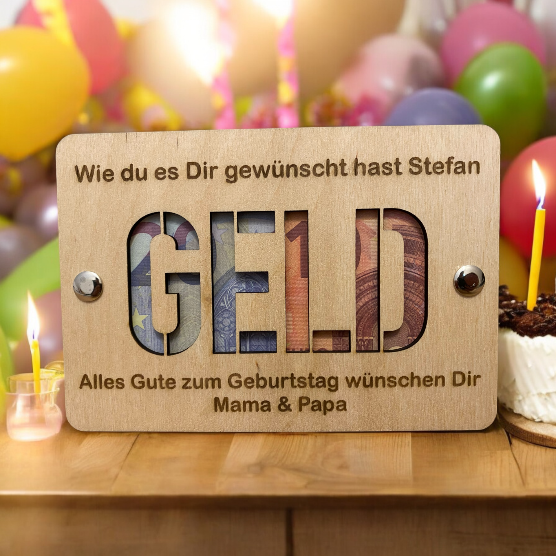 Mit dieser Geschenkkarte aus Holz als Geldgeschenk liegen Sie garantiert richtig. Persönlich, kreativ und unvergesslich – ein Highlight für jeden Geburtstag.
